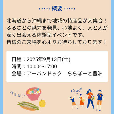 ふるさとの魅力を発見。人と人が深く出会える体験型イベントです。試飲試食、販売、自治体PRをお楽しみください。