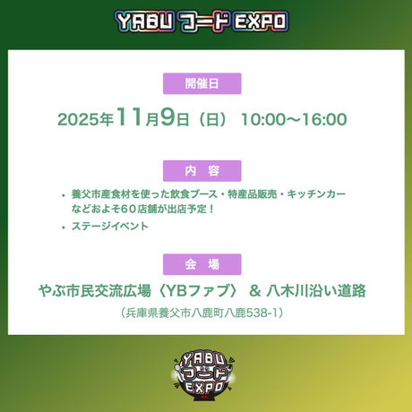 養父市で初開催となる食のイベント「YABUフードEXPO」が開催されます