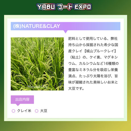 城山ブルークレイを肥料として育てたお米と大豆をご賞味ください。